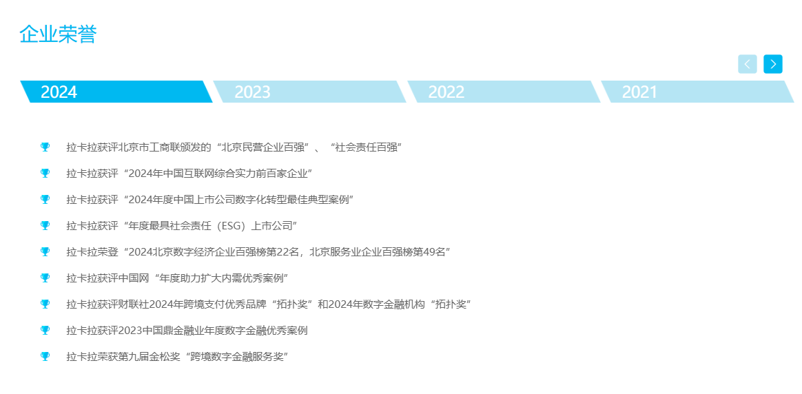 拉卡拉深入践行“支付为民”、“合规发展就是生产力”的理念,实施“推广数字支付、共享数字科技、兑现数据价值”的经营战略,以支付为入口,持续深化“支付+”布局,聚焦餐饮、零售、汽车、旅游等领域,为商户提供数智化整体解决方案,加速AI与业务融合,助力实体经济高质量发展。