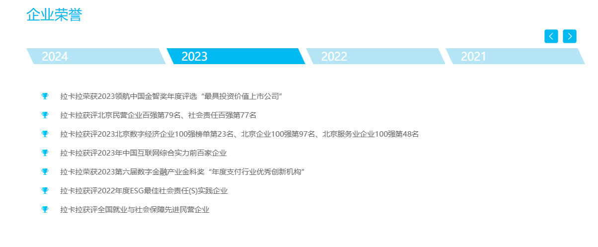 经过多年的发展,拉卡拉的业务规模持续扩大,市场份额稳步提升。截至目前,拉卡拉已在全国 300 多个城市设立分公司,业务覆盖超过 400 个城市,服务商户数量超过 2700 万家,年交易金额超过 4 万亿元,成为国内支付行业的领军企业之一。