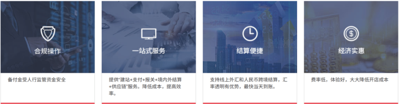 2015年获得跨境支付牌照,支持交易主体B2C和B2B。支持15个币种和272个国家及地区的跨境收付款,覆盖货物贸易、留学教育、旅游服务、国际物流、咨询服务、广告服务、职工报酬、文娱服务、软件服务等多种贸易类型。