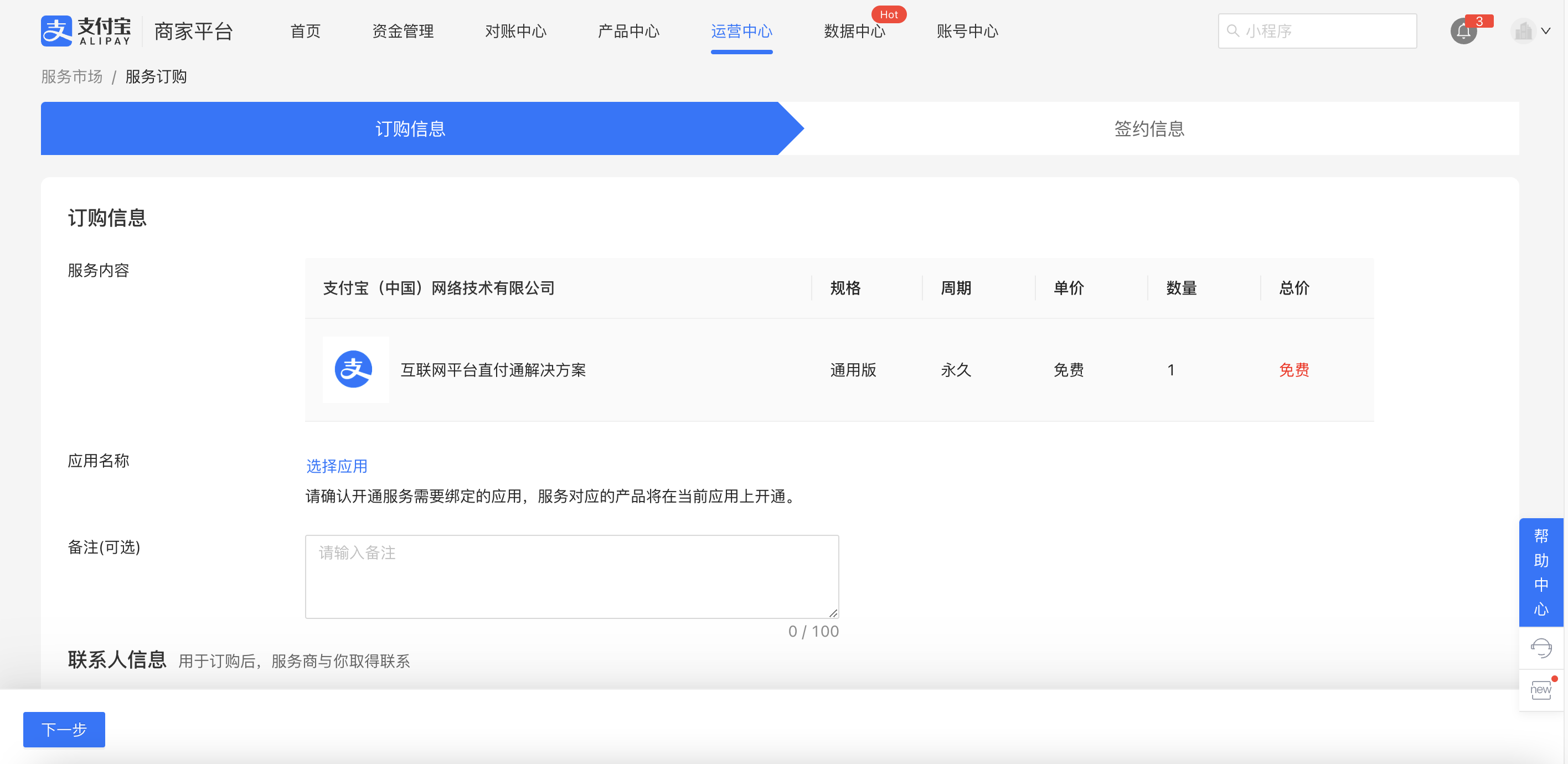创建应用后,还需要开通 互联网平台直付通 才能使用。请平台商登录 支付宝商家平台 >进入 产品中心 > 产品详情页面> 点击 立即开通。填写并提交相关信息,开通互联网平台直付通解决方案。可查看 直付通开通。
