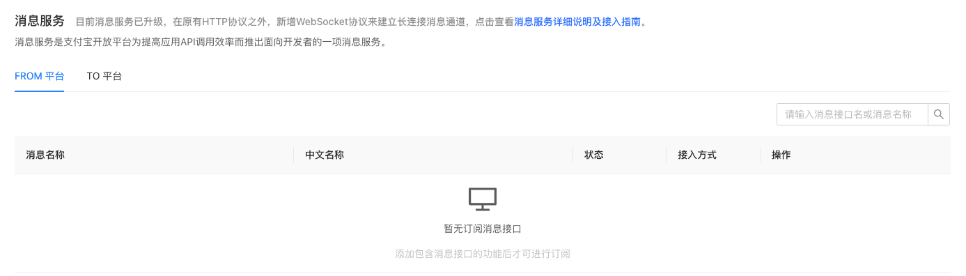 选填。异步消息通知,用于提高应用 API 的调用效率。详情可查看 主动推送服务(From 蚂蚁)和 消息回流服务(To 蚂蚁)。