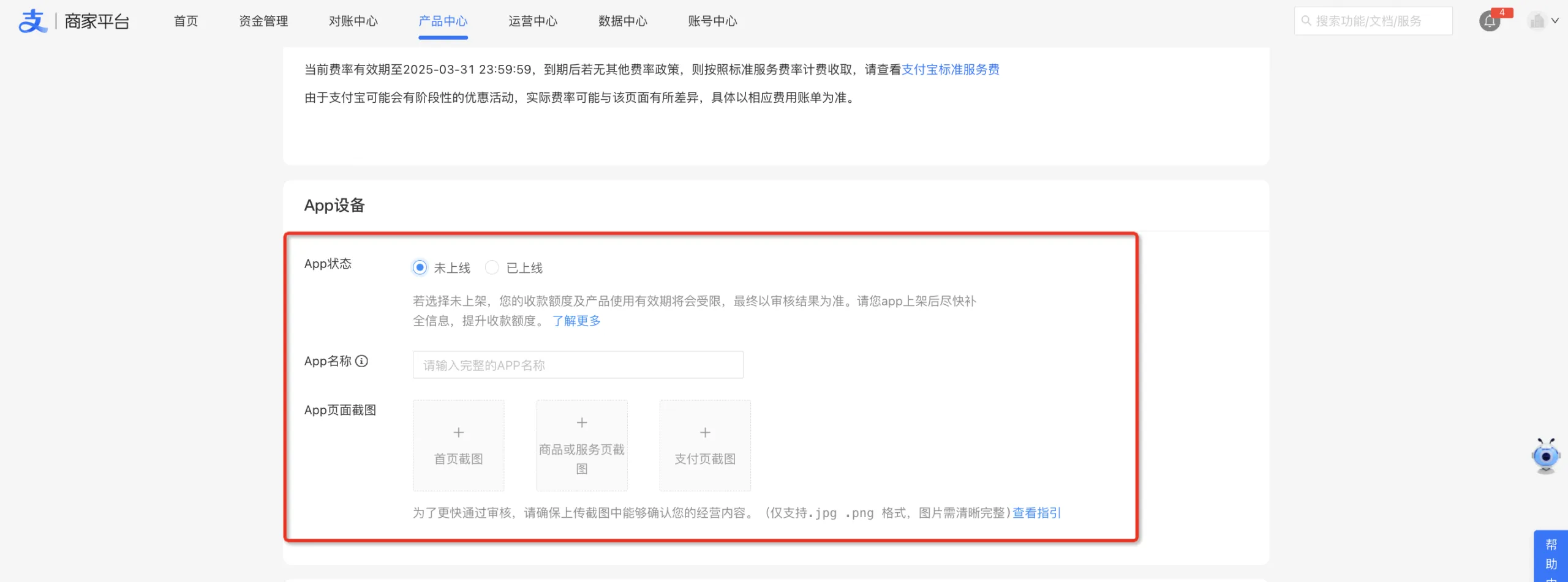 注意:根据相关规定,新签约该产品未满90日或连续交易未满30日的商家,通过该产品收款的资金都将于次日结算到指定账户。商家当日的收款资金,可在 对账中心 > 不可用余额 中查看。