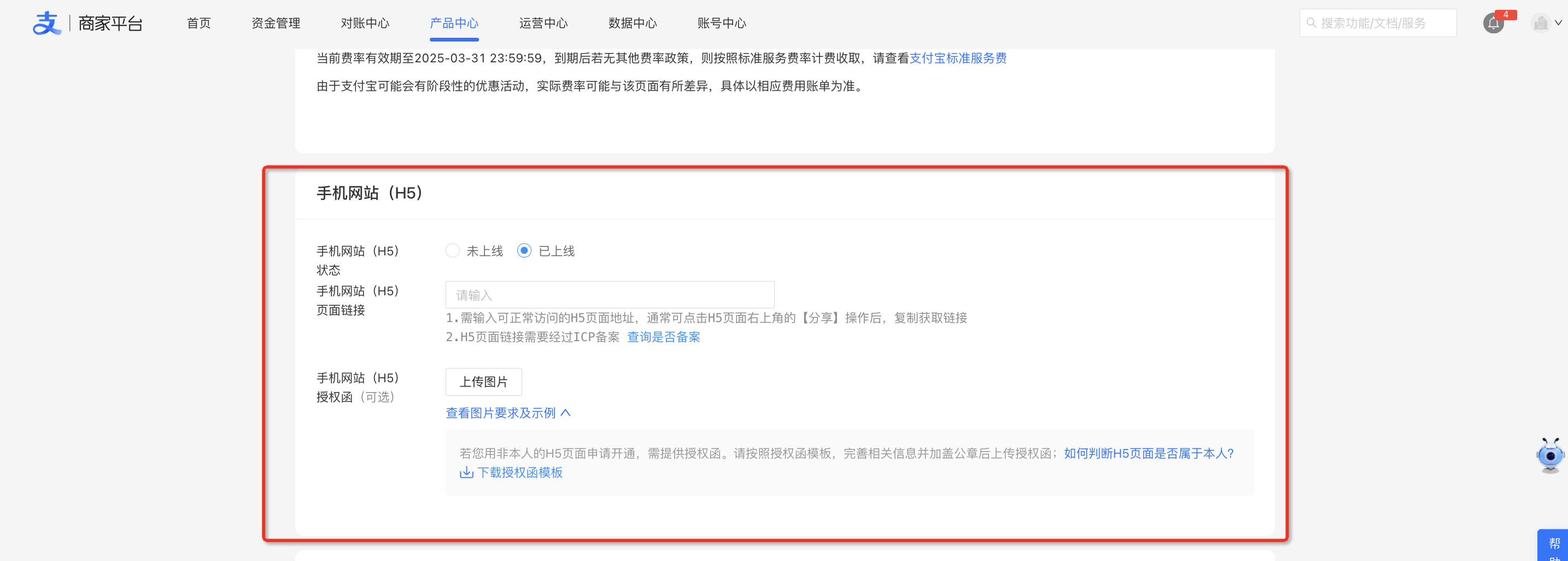 注:若使用支付宝个人账号申请,请提前准备好您的营业执照,营业执照主体和支付宝账号名称需一致,签约时需要提交。
