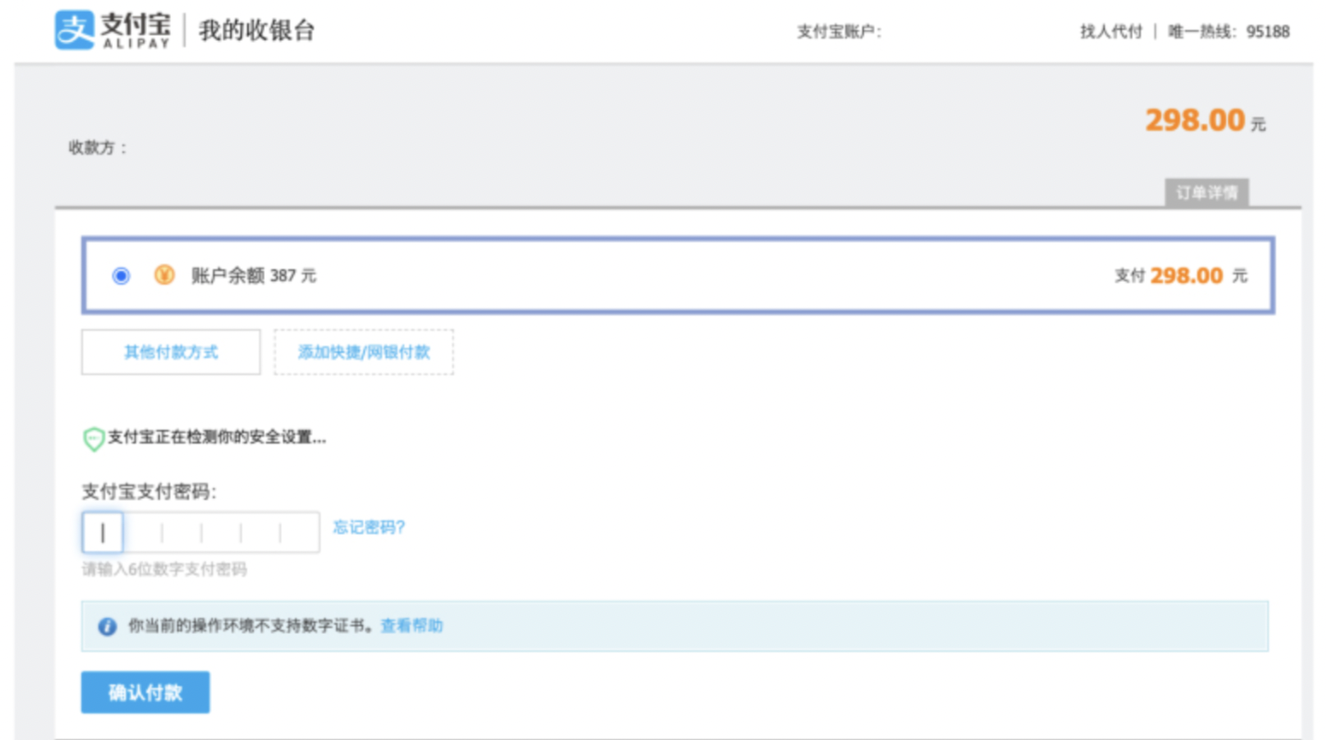 1.支持的账号类型:经过认证的支付宝个人账号或支付宝企业账号。