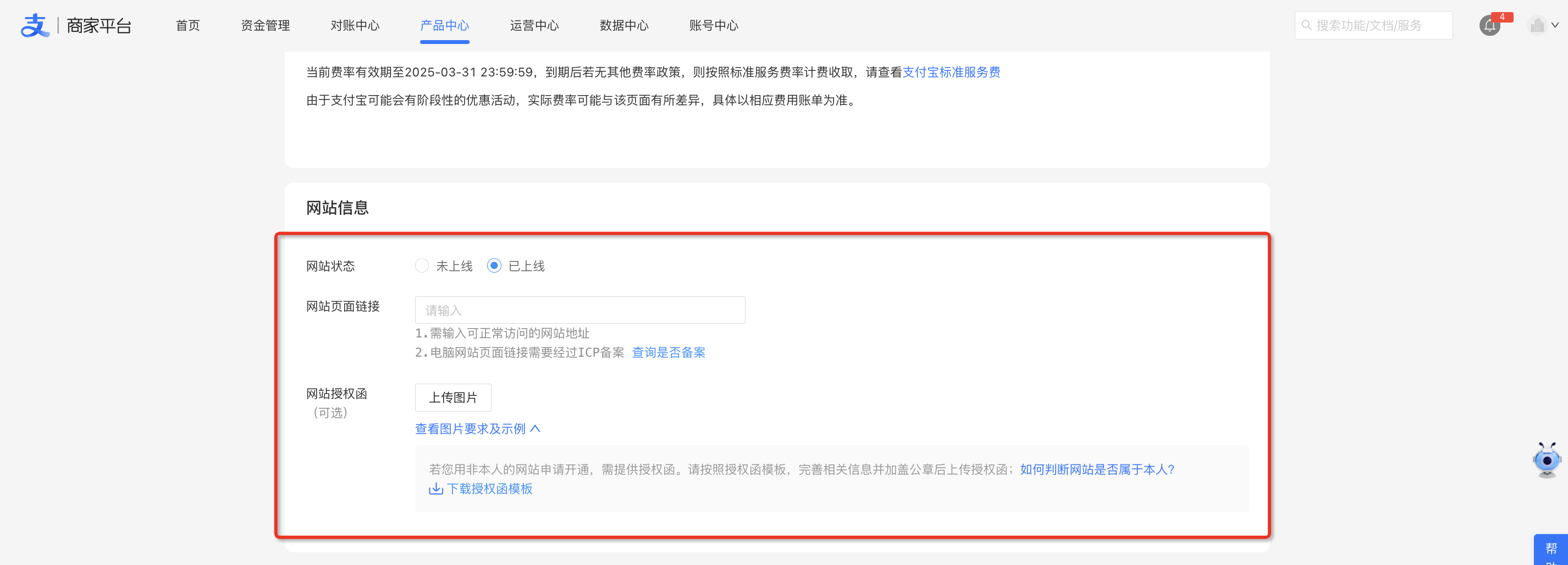 注:若使用支付宝个人账号申请,请提前准备好您的营业执照,营业执照主体和支付宝账号名称需一致,签约时需要提交。