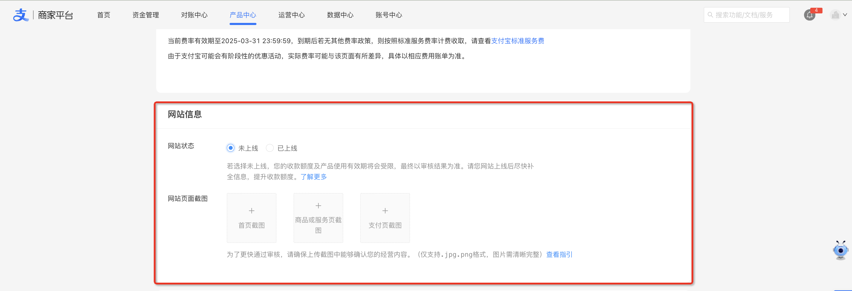 注意:需按照要求提交材料,若部分材料不合格,收款额度将受到限制(单笔收款 ≤ 2000元,单日收款 ≤ 20000元)。您需在合约生效后的30天内补全,否则会影响正常收款。如您需要了解具体规则可点击查看详情;如您需要进行提额可根据提额指引进行操作。